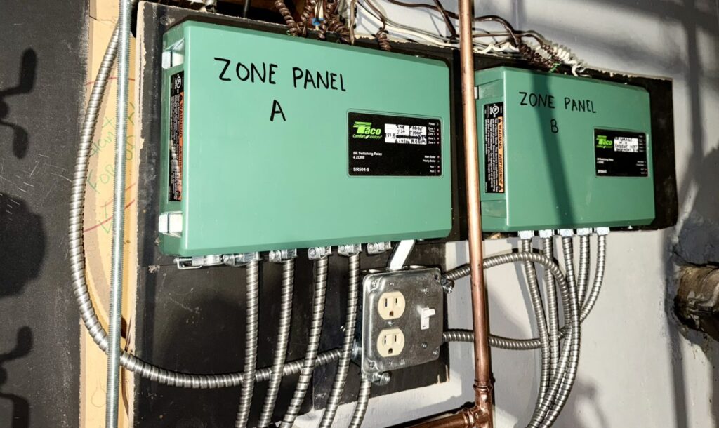 This zoning setup allows the homeowner to control heat more precisely while ensuring each part of the house receives the warmth it needs.